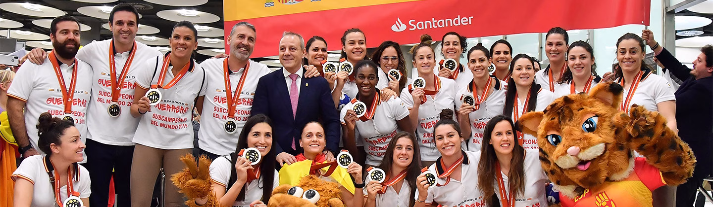 La selección española aterriza en Madrid con la medalla de plata colgada al cuello, ante la mirada de numerosos aficionados