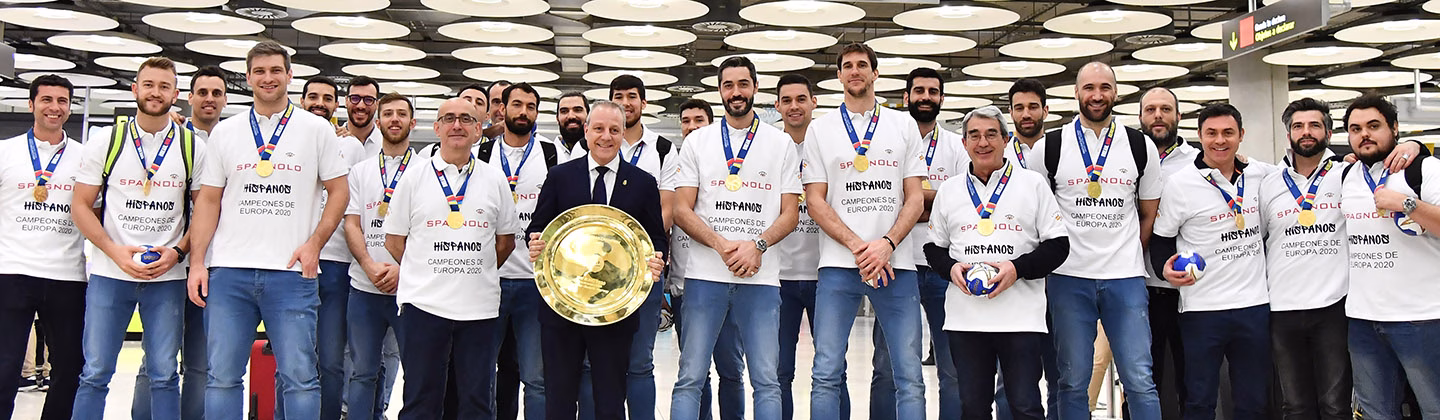 La selección española aterriza en Madrid con la medalla de oro colgada al cuello, ante la mirada de numerosos aficionados