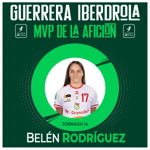 Granollers se encuentra en la primera mitad de la tabla y suma una importante victoria que le coloca en sexta posición y a tan solo un punto de la quinta. Belén entraba en el minuto 21 sustituyendo a Martina Capdevila y se estrenaba con un espectacular gol de uno contra uno en su primera acción. Pocos minutos después llegaba el segundo en otra acción individual que demostraba de nuevo su calidad como jugadora. En total fueron 6 los tantos que anotó que, sumados a la calidad de sus acciones individuales y la excelente toma de decisiones que mantuvo durante el partido, le han llevado a obtener este reconocimiento.
