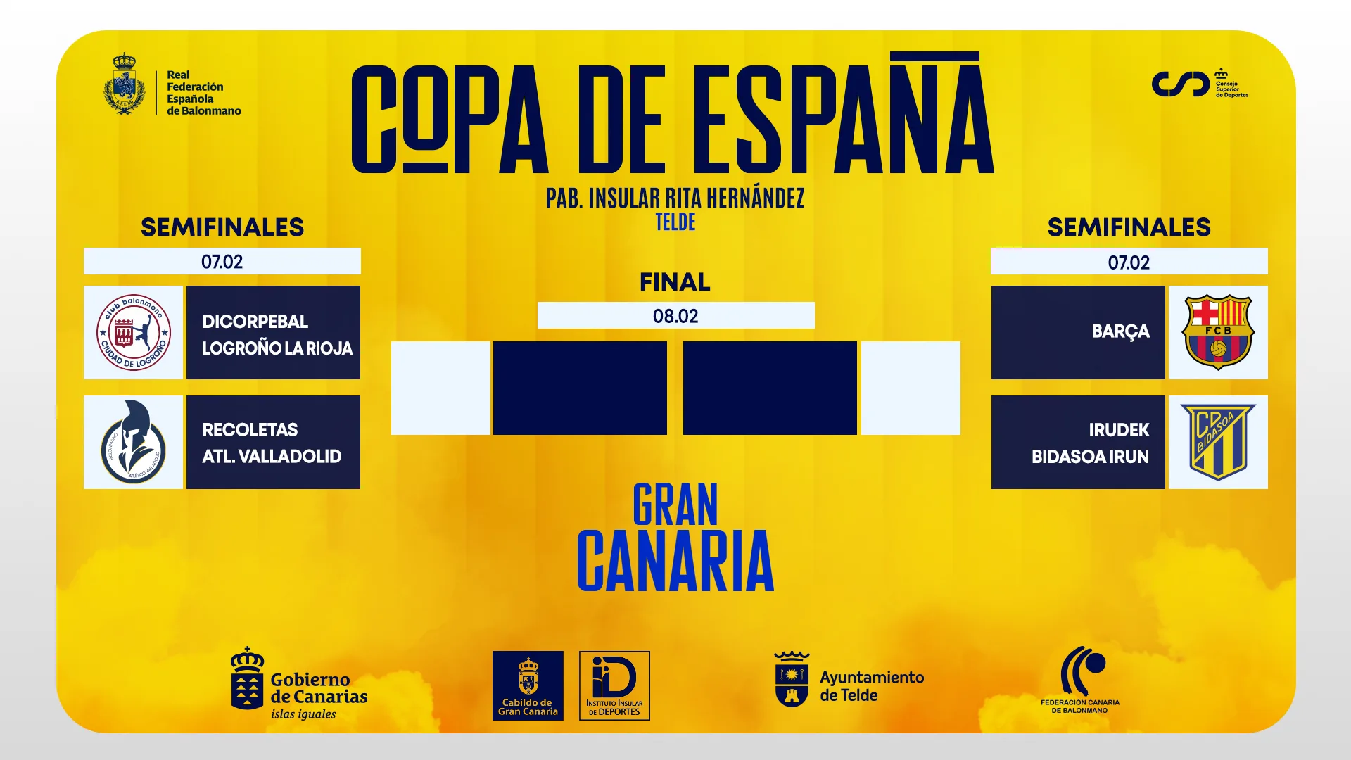 El sorteo, que partía con dos cabezas de serie (los dos primeros clasificados de la liga), ha deparado duelos de máxima rivalidad para el próximo 7 de febrero en el Pabellón Insular Rita Hernández: por un lado, Discorpebal Logroño La Rioja se enfrentará a Recoletas Atlético Valladolid mientras que el Barça a Irudek Bidasoa Irun