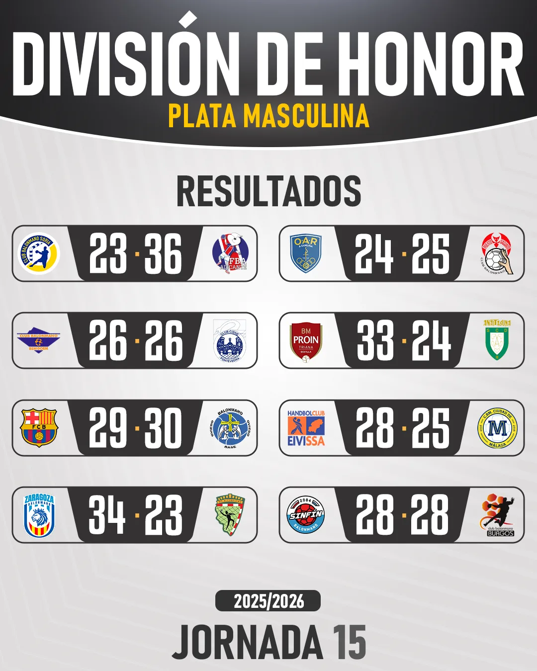 La 15ª jornada de la División de Honor Masculina Plata aparece en el horizonte con un fin de semana de partidos de máximo nivel que afectan a los puestos de play-offs y a los de permanencia. El Attica 21 Hotels OAR Coruña vs Fertiberia Puerto Sagunto, o el Contazara Zaragoza vs Club Balonmano Alcobendas, los duelos destacados.