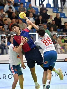 No tardó mucho el Barça Juvenil en demostrar que su hegemonía extiende sus tentáculos también hacia las categorías inferiores. En un visto y no visto, cuatro goles de ventaja (3:7, min. 10) para dar un primer golpe a KH-7 BM. Granollers, pese a que se agarraba a la pista exhibiendo un gran balonmano para evitar que lo rompiesen lo blaugranas antes de tiempo.