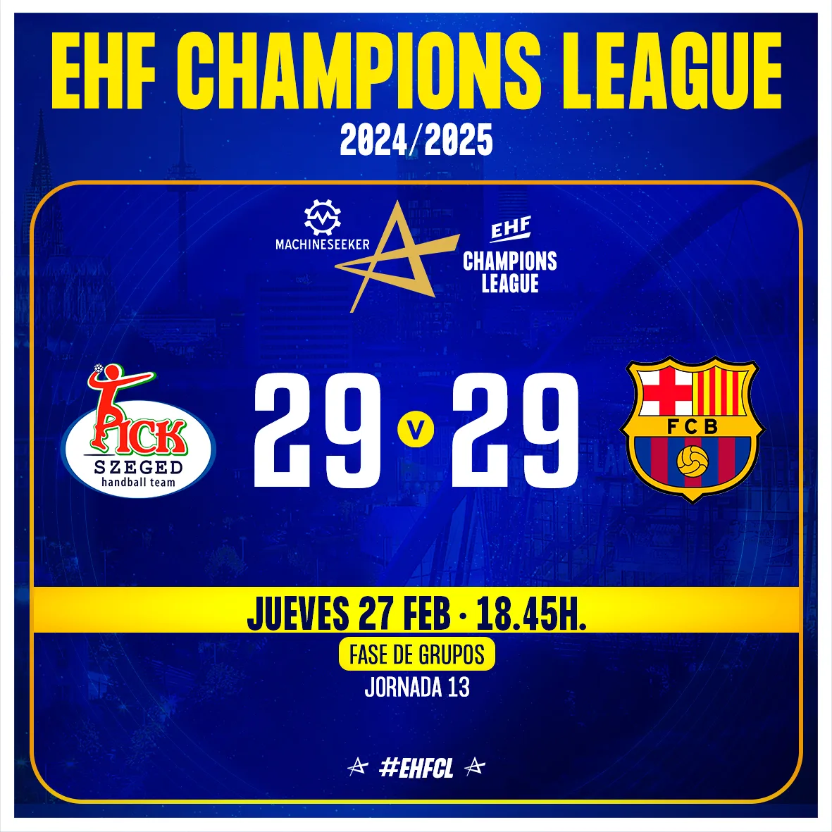 Pese a que no hubiese nada en juego, el Barça sacó a relucir su carácter de campeón en el Pick Arena de la ciudad húngara de Szeged. En un partido en el que tuvieron que ir a remolque desde el inicio, y en el que no tocaron la ventaja en el marcador hasta el minuto 41, dos goles en el último minuto de Manuel Ortega y Thiagus Petrus dieron ese punto con el 29:29 definitivo.