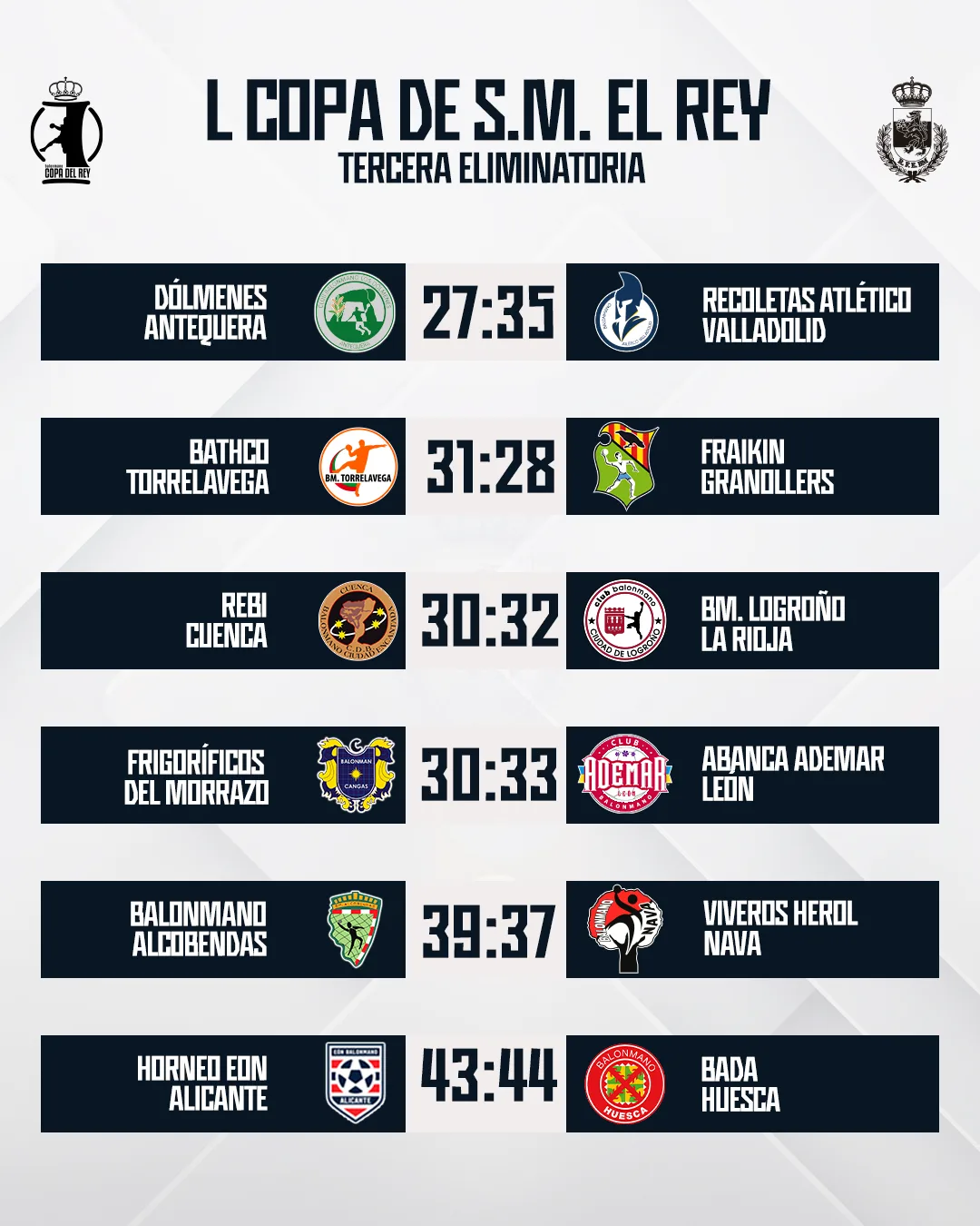 Siguiendo con los duelos directos entre equipos de la primera división nacional, Balonmano Logroño La Rioja y Abanca Ademar León también sacaron su billete para la fase final de la L Copa de S. M. el Rey, y ambos consiguiendo hacerlo a domicilio. Los riojanos asaltaron la casa del REBI Cuenca por 30:32, con Andrej Pergel, David Dadarso y Xavier Tua liderando al equipo de Miguel Ángel Velasco, y ofreciendo una lección de deportividad durante el encuentro, cuando Xoan Ledo demostró los valores que tiene el balonmano al corregir al árbitro la decisión de excluir dos minutos a Alexandr Pozzer por un pelotazo en la cara que no fue. El camino que ya abrió Gonzalo Pérez de Vargas, toda una inspiración para los jugadores de este deporte.
