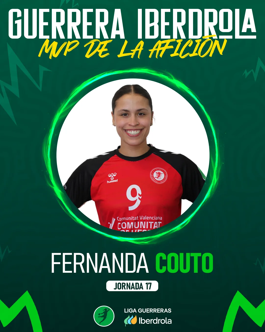 El Comité de Expertos del Área Femenina de la Real Federación Española de Balonmano ha designado a Fernanda P. Couto, lateral de Balonmano Morvedre, como Guerrera Iberdrola de la Jornada 17 en la Liga Guerreras Iberdrola.