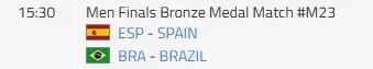 Brasil tuvo la última posesión y logró anotar un gol de doble puntuación, forzando así el gol de oro. Pero fue el conjunto español quien se llevó el set: tras un saque preciso de Marcos Pérez, Manu Ramírez culminó la jugada con el tanto definitivo que dio a los Hispanos de la Arena el primer punto en esta pelea por el bronce.