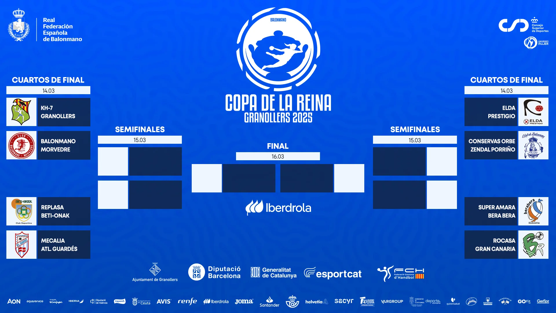 La XLVI Copa de S. M. la Reina ya conoce el ‘dibujo’ completo de su fase final, con los diferentes emparejamientos de los ocho equipos clasificados que deben pugnar por el cetro copero entre el 14 y el 16 de marzo en el Palau d’Esports de Granollers.