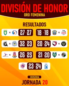 Finaliza la Jornada 20 en la División de Honor Oro Femenina, marcada por la igualdad extrema en varios de sus encuentros, con hasta tres empates registrados que mantienen la tensión en la tabla clasificatoria.