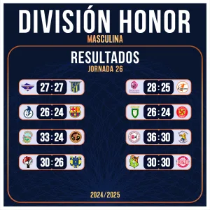 Para cerrar la jornada, otro gran duelo, un ‘clásico’ de la División de Honor Masculina con el Palau D’Esports como escenario para presenciar una auténtica batalla entre Fraikin Granollers y ABANCA Ademar León. En juego, recuperar la segunda plaza para el equipo vallesano y, para el leonés, seguir aferrado al tren de Europa. Con ese cartel solo podía estar por venir un encuentro espectacular, y así fue, con un choque lleno de alternativas para ambos equipos con emoción hasta el último segundo, que acabó resolviéndose con reparto de puntos (30:30). Un punto con buen sabor tanto para los de Antonio Rama, que recuperan la segunda plaza, como para los pupilos de Dani Gordo que suman un valioso punto para seguir opositando a Europa. Los puestos europeos y la permanencia muy vivos para las cuatro últimas jornadas para la finalización del campeonato.