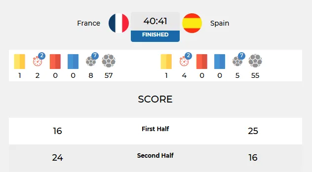 Francia ha apretado en esta segunda mitad y llega al tramo final del encuentro en pelea por la novena plaza. Los jugadores de Javier Fernández buscan amarrar la victoria.