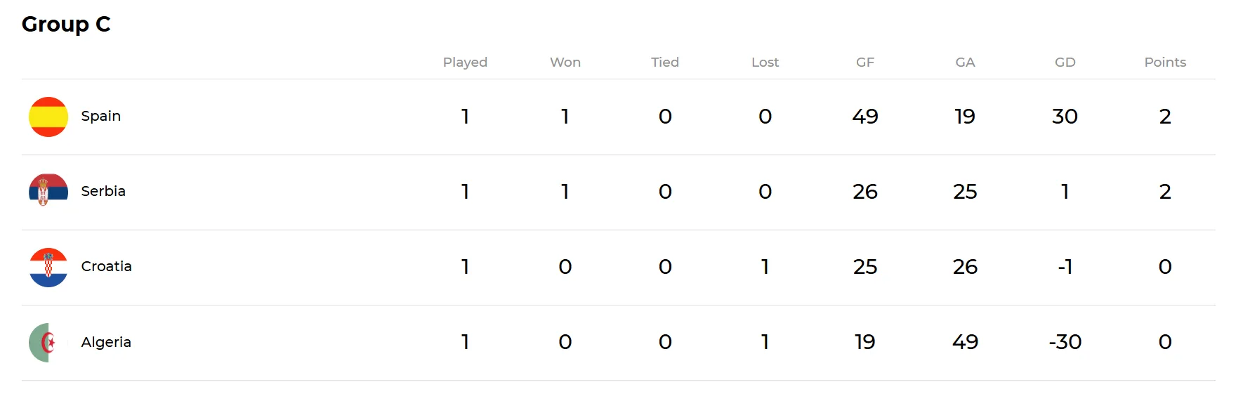 Con este resultado, Serbia suma sus dos primeros puntos y se coloca como segundo del grupo empatado a puntos con España pero con el golaveraje en contra.