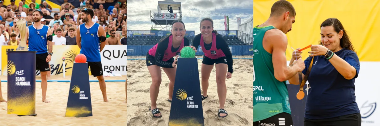 Por su parte, los colegiados Marcos Domínguez y Jorge Batanero, quienes se unieron al equipo de árbitros de la EHF Beach Handball a finales de 2023, asistirán a los EUSA Beach Games que se celebran en Granada en el mes de julio. Tras una dilatada trayectoria en el arbitraje español, la pareja superó el curso de la EHF y pudo dirigir la final masculina de la Champions Cup celebrada en Porto Santo (Portugal) justo después.