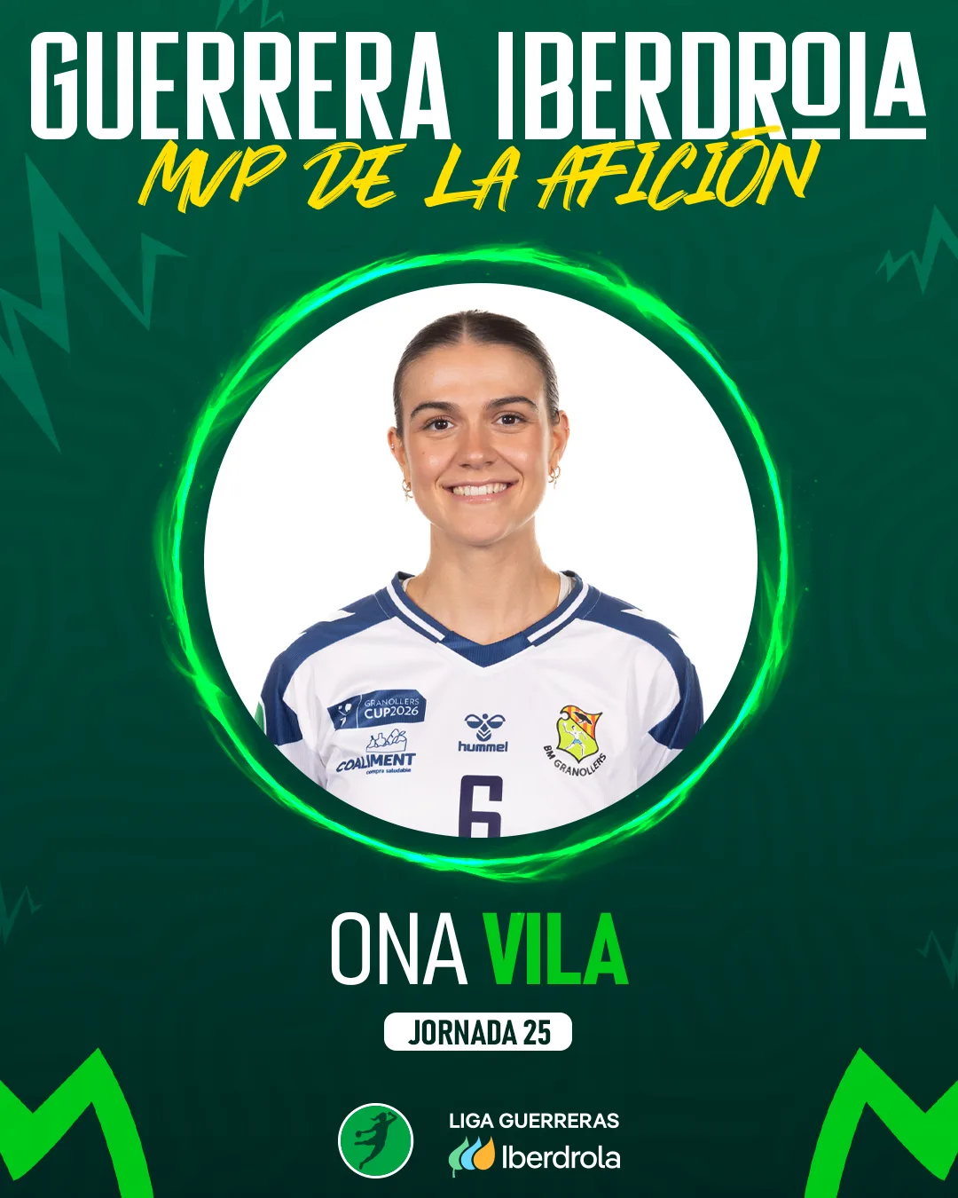 KH-7 Granollers ocupa la novena posición de la Liga Guerreras Iberdrola con 24 puntos en la vigesimoquinta jornada de la competición y, aunque falte aun una fecha por jugar, las catalanas se han quedado fuera de la disputa del play-off. Ona Vila es la tercera integrante del equipo que se ha llevado el galardón, pues el primer Guerrera Iberdrola del conjunto se lo llevó la guardameta Marta mera en la jornada 5 y la capitana, Martina Capdevila, lo ganó en la 18.